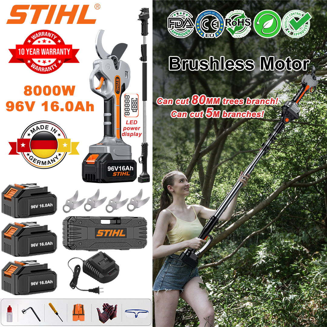 Foarfece de grădinărit STIHL fără perii cu litiu de 8000 W și mâner telescopic